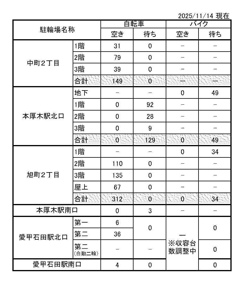 愛甲石田駅周辺駐輪場