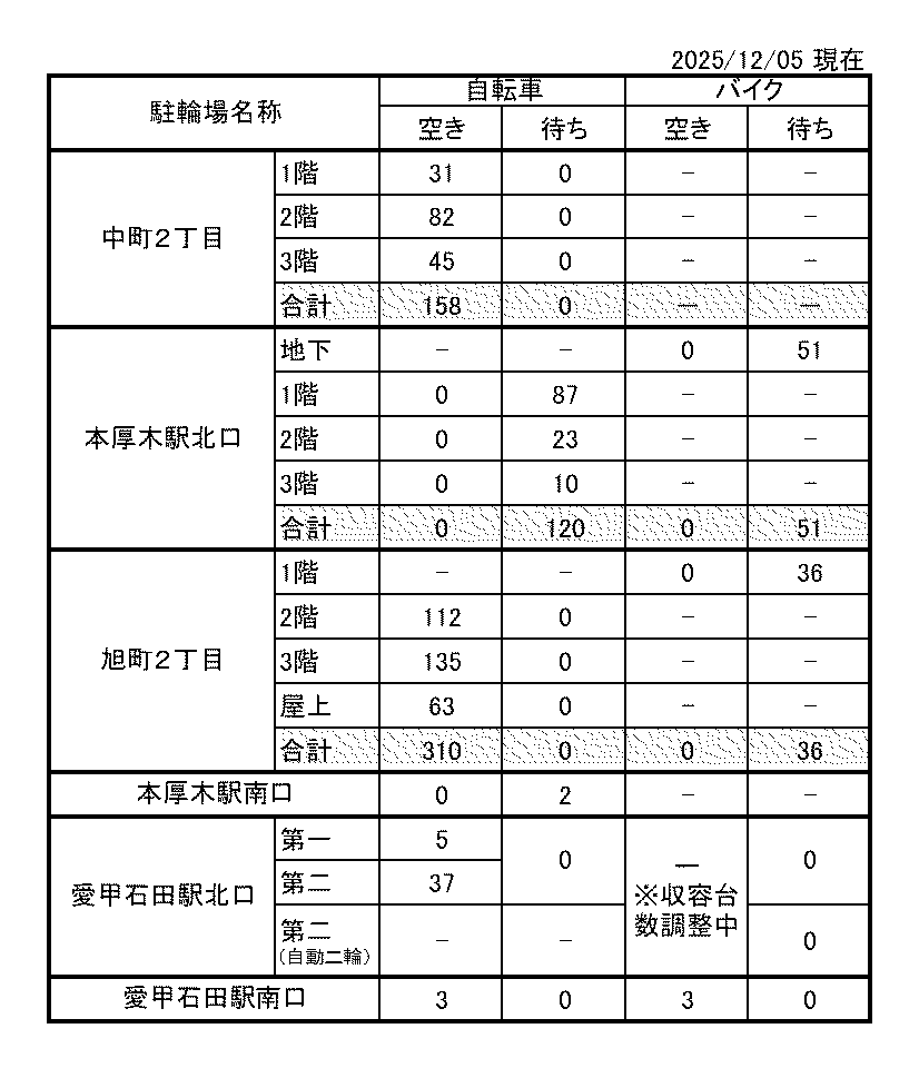 ※最新の情報は各自転車等駐車場にお問合せ下さい。